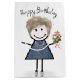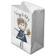 Birthday Stick Figure Girl With Bouquet Medium Gift Bag