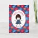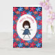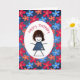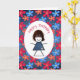Birthday Stick Girl and Daisies On Blue Denim Card