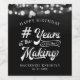 Celebrate any year birthday with these personalised black and white wine and beverage label featuring a calligraphy script typography title design # YEARS IN THE MAKING that incorporates their birth year within the design, the editable title HAPPY BIRTHDAY and name and date or other custom text with a border of string lights. Contact the designer via Zazzle Chat or makeitaboutyoustore@gmail.com if you'd like this design modified, in another colour, on another product or would like coordinating items.