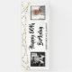 Celebrate an 80th birthday and welcome party guests with this editable white and black banner sign featuring a border of gold and white string lights, two photos (perhaps then and now photos) and HAPPY # BIRTHDAY NAME in a modern hand lettered brush script font. PHOTO TIP: For fastest/best results, choose a photo with the subject in the middle and/or pre-crop it to a square shape BEFORE uploading and use the CHANGE tab in the PERSONALIZE section. CHANGES: Change the background colour, choose a styled graphics background or change the personalised text font style, colour, size and placement by clicking on CUSTOMIZE FURTHER under the PERSONALIZE section. Contact the designer via Zazzle Chat or makeitaboutyoustore@gmail.com if you'd like this design modified, on another product or would like coordinating items.