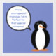 Here, Ms. Penguin models her birthday suit on a window cling. She looks neat and clean and ready for any event or celebration. Her talk bubble lets you personalise by adding text to make her say whatever you like that is fit to print. You can celebrate any holiday or occasion. Remember, January 20th is Penguin Awareness Day. April 25th is World Penguin Day. Change the background colour, font, and text colour by using the "edit design" tool.
