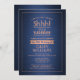 Can you keep a secret? Invite family and friends to an elegant and exciting surprise birthday celebration with custom navy blue and copper party invitations. All wording on this template is simple to personalize, including message that reads "Shhh! It's a SURPRISE." The design features a modern striped border on a faux brushed metallic background, classic vintage art deco typography and stylish script calligraphy. Please note that copper is printed color, not metallic foil. This card can be customized for any year or event type, and is suitable for either a man or a woman. Cheers and Happy Birthday!