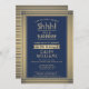 Can you keep a secret? Invite family and friends to an elegant and exciting surprise birthday celebration with custom navy blue and faux gold foil party invitations. All wording on this template is simple to personalize, including message that reads "Shhh! It's a SURPRISE." The design features a modern striped border on a faux brushed metallic background, classic vintage art deco typography and stylish script calligraphy. Please note that gold is printed ombre color, not metallic foil. This card can be customized for any year or event type, and is suitable for either a man or a woman. Cheers and Happy Birthday!