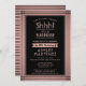 Can you keep a secret? Invite family and friends to an elegant and exciting surprise birthday celebration for her with custom pink and black party invitations. All wording on this template is simple to personalize, including message that reads "Shhh! It's a SURPRISE." The design features a modern striped border on a faux rose gold foil background, classic vintage art deco typography and stylish script calligraphy. Please note that rose gold is printed color, not metallic foil. Cheers and Happy Birthday!