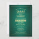 Can you keep a secret? Invite family and friends to an elegant and exciting surprise birthday celebration with custom green and gold party invitations. All wording on this template is simple to personalize, including message that reads "Shhh! It's a SURPRISE." The design features a modern striped border on a faux brushed metallic background, classic vintage art deco typography and stylish script calligraphy. Please note that gold is printed color, not metallic foil. This card can be customized for any year or event type, and is suitable for either a man or a woman. Cheers and Happy Birthday!