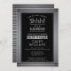 Can you keep a secret? Invite family and friends to an elegant and exciting surprise birthday celebration with custom black and faux silver foil party invitations. All wording on this template is simple to personalise, including message that reads "Shhh! It's a SURPRISE." The design features a modern striped border on a faux brushed stainless steel background, classic vintage art deco typography and stylish script calligraphy. Please note that silver is printed grey ombre colour, not metallic foil. This card can be customised for any year or event type, and is suitable for either a man or a woman. Cheers and Happy Birthday!