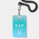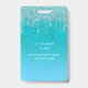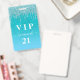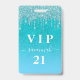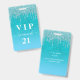 A modern, stylish and glamourous badge for a 21st (or any age) birthday party. A teal, green, blue gradient glitter background with faux glitter drip, paint dripping look. Personalise and add a name. The name is written with a modern hand lettered style script with swashes. The text: VIP Number 21. To keep the swashes only delete the sample name, leave the spaces or emoji's in front and after the name.