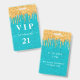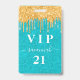 Birthday teal gold glitter drips vip invitation ID badge