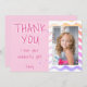 Birthday thank you card for girls with photo and text I love your wonderful gift. A cute pink birthday thank you card for your friends and family. Upload your photo and personalise the card with your name and text. The card has colourful stars and waves. The back side is pink. Great as thank you card for girls.