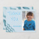 A cute birthday thank you card with a photo and thank you note for your friends and family. Upload your photo and personalise the card with your name. The card has blue waves on the front and the back side. Great as thank you card for boys.