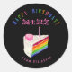 Birthday Treat Rainbow Cake Black Watercolor Classic Round Sticker
