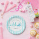 Birthday turquoise glitter modern script name chic paper plate