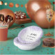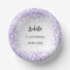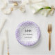 A white background. A white background decorated with violet, lavender confetti. Personalise and add a name and date.