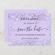 A girly and trendy Save the Date card for a 40th (or any age) birthday party. A violet, lavender coloredbackground decorated with faux glitter dust. Personalise and add a date and name/age 40. The text: Save the Date is written with a large trendy hand lettered style script.