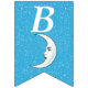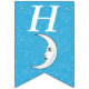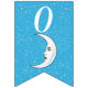 This flag shaped bunting Happy Birthday banner is bright aqua blue with a scattering of tiny white stars and a white crescent moon that has a face. Customise the birthday year with the templates.