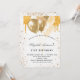 For an elegant 21st (or any age) birthday. A chic white background. Decorated with faux gold glitter drips, paint dripping look and balloons. Personalise and add a name, age 21 and party details. The name is written with a hand lettered style script