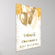 A welcome poster for a girly and glamourous 21st (or any age) birthday party. A white background decorated faux gold glitter drips, paint dripping look, balloons. Personalise and add a name and age. Text: real gold foil