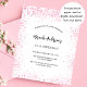 For an elegant 21st (or any age) birthday. A stylish white background. Decorated with pink faux glitter, sparkles. Personalise and add a name, age and party details. The name is written with a hand lettered style script.