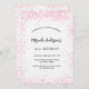 For an elegant 21st (or any age) birthday.  A stylish white background.  Decorated with pink faux glitter, sparkles. Personalise and add a name, age and party details. The name is written with a hand lettered style script