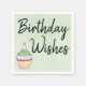 Birthday Wishes Cupcake Green Watercolor Napkin