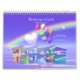 Unique calendar featuring beautiful 3d artwork with birthstone hearts floating on water with rainbows and celebration balloons.
