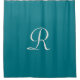 CHOOSE YOUR COLOR - This elegant minimalist shower curtain can be any background colour you select! Default Background is trendy Biscay Bay; monogram is off white. A great gift for a wedding or housewarming. Matching bath mat is available. All Rights Reserved © 2015 Alan & Marcia Socolik.