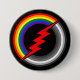 Circle of rainbows split in half by a thunder bolt symbol forming two rainbows. LGBT rainbow flag colours on one side, grayscale on the other. Symbolising half and half. Bisexuality.