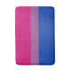This design features the bisexual pride flag, which was first designed by Michael Page in 1998. It was intended to give the bisexual community its own symbol comparable to the gay pride flag. In the flag, the pink is for same gender attraction, blue is for different gender attraction, and purple is to represent the attraction across the gender spectrum.