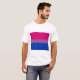 This design features the bisexual pride flag, which was first designed by Michael Page in 1998. It was intended to give the bisexual community its own symbol comparable to the gay pride flag. In the flag, the pink is for same gender attraction, blue is for different gender attraction, and purple is to represent the attraction across the gender spectrum.