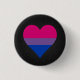 Classic Round Button with heart design in colours of bisexuality; pink, purple and blue stripes pride flag, rainbow love design