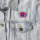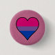 Classic Round Button with heart design in colours of bisexuality; pink, purple and blue stripes pride flag, rainbow love design