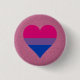 Classic Round Button with heart design in colours of bisexuality; pink, purple and blue stripes pride flag, rainbow love design