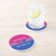 Sandstone coaster with the bisexuality pride flag with little hearts in the centre of the design. Pink, purple, and blue flag of the bi pride movement; with an editable text field for your name or message