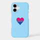 Design with hearts design in colors of bisexuality; pink, purple and blue stripes bi pride flag, rainbow love bi pride design on blue background