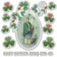 This beautiful contour sticker features a traditional Catholic image of St. Patrick with a variety of green shamrocks. You'll love the shamrocks with the red heart too!