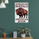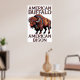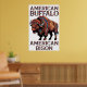 An illustration of a bison wearing a headdress made of colourful feathers.