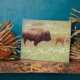 A bison and her calf stand in a grassy meadow of Yellowstone National Park in this digital painting, based on an original photograph by artist/photographer Jayne Wilson.