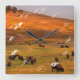 Bison Grazing on Hill at Hayden Valley Square Wall Clock