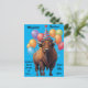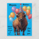 A birthday greeting featuring a majestic American bison in a party hat, offering dry humour about aging and resilience. Perfect for those who appreciate wit and wildlife. generativecontent. The text on the postcard can be edited.