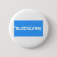A big text message on a digital light blue screen with a heavy distortion glitch fx: Blockchain.