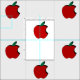 This fabric contains a pattern of partially bitten apples.