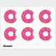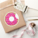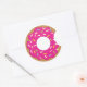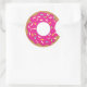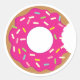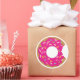 Bitten doughnut with coloured sprinkles stickers and envelope seals / sealers. Personalise with your own text or logo. Silhouette drawing of pink glazed doughnut with bite.