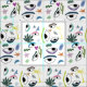 Eyes art, birds and plants modern art inspired by Matisse, custom background colour.