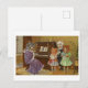 This is a reproduction of a vintage postcard showing a cat family singing by the piano.