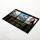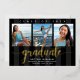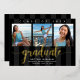 Announce to the world that your favourite grad has reached their milestone with this stunning, simple, modern, personalised announcement. Sparkly, elegant, real foil calligraphy script and white sans serif typography overlay a black and dark grey striped background. Add three photos of your choice and personalise the custom text with your graduate’s name, school name, class year, and graduation date. On the back, add your personal note, next school they’re attending, party information, etc. Matching and coordinating thank you cards, cap toppers, fans, napkins, plates, banners and other graduation goodies are also available in this trendy and stylish collection. Guaranteed to add stylish fun to their special occasion!