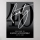 The design uses a gray to black gradient background that adds depth and sophistication. All colors, including the background and fonts, can be customized to match your style. Perfect for milestone birthdays, this updated design sets a stylish and elegant tone for any celebration.