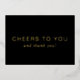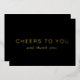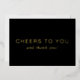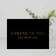 Elegant black 50th birthday thank you card. The front features "Cheers To You And Thank You" in a blend of classic serif and simple typography, rendered in your choice of genuine gold, silver, or rose gold foil. On the back, you can add a personal message and your name.