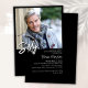 Photo modern minimalist black and white 60th birthday party invitation for a fun birthday party. Age can be changed. This invitation is simple and elegant, adult milestone birthday invitation for men and women. The black and white background colour can be changed to any colour of your choice using the design tool.