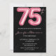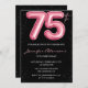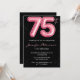 Black 75th birthday invitations Balloon Glam Pink Glitter Sparkle