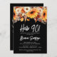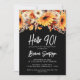 Black and White Fall Floral 90th birthday party invitation for a fun birthday party